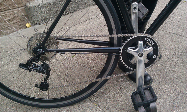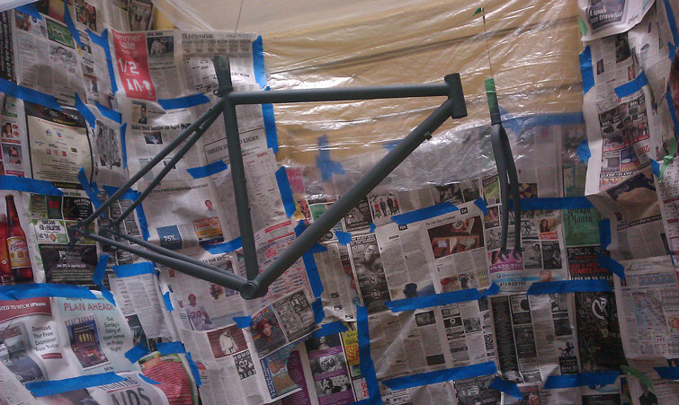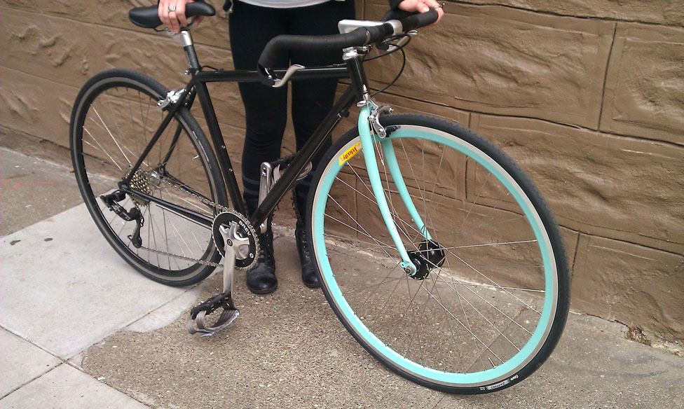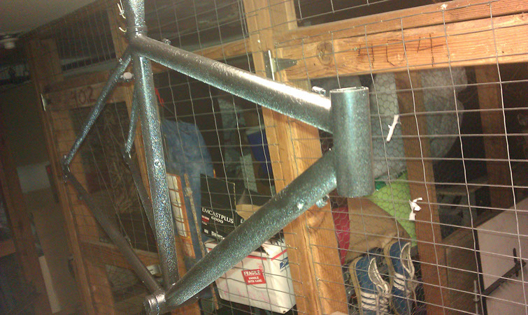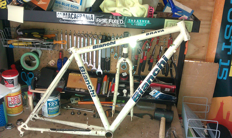 So Lizard had been in the need of a new bike for a while, long before the morning Twitch had it break down on his cross-city hungover ride. So for last Christmas I built her up an old Bianchi Brava that had had been unfortunately neglected. I got the frame, fork, and cranks from a buddy who had it laying in the back of his shop for a great deal and had a black Deep-V laced to a 9speed hub that I was willing to part with myself. First thing first it needed to be stripped and cleaned, I got to taking everything apart and removed all the paint with a little thinner and a soft wire wheel on my drill (was even able to remove a little surface rust as well!)